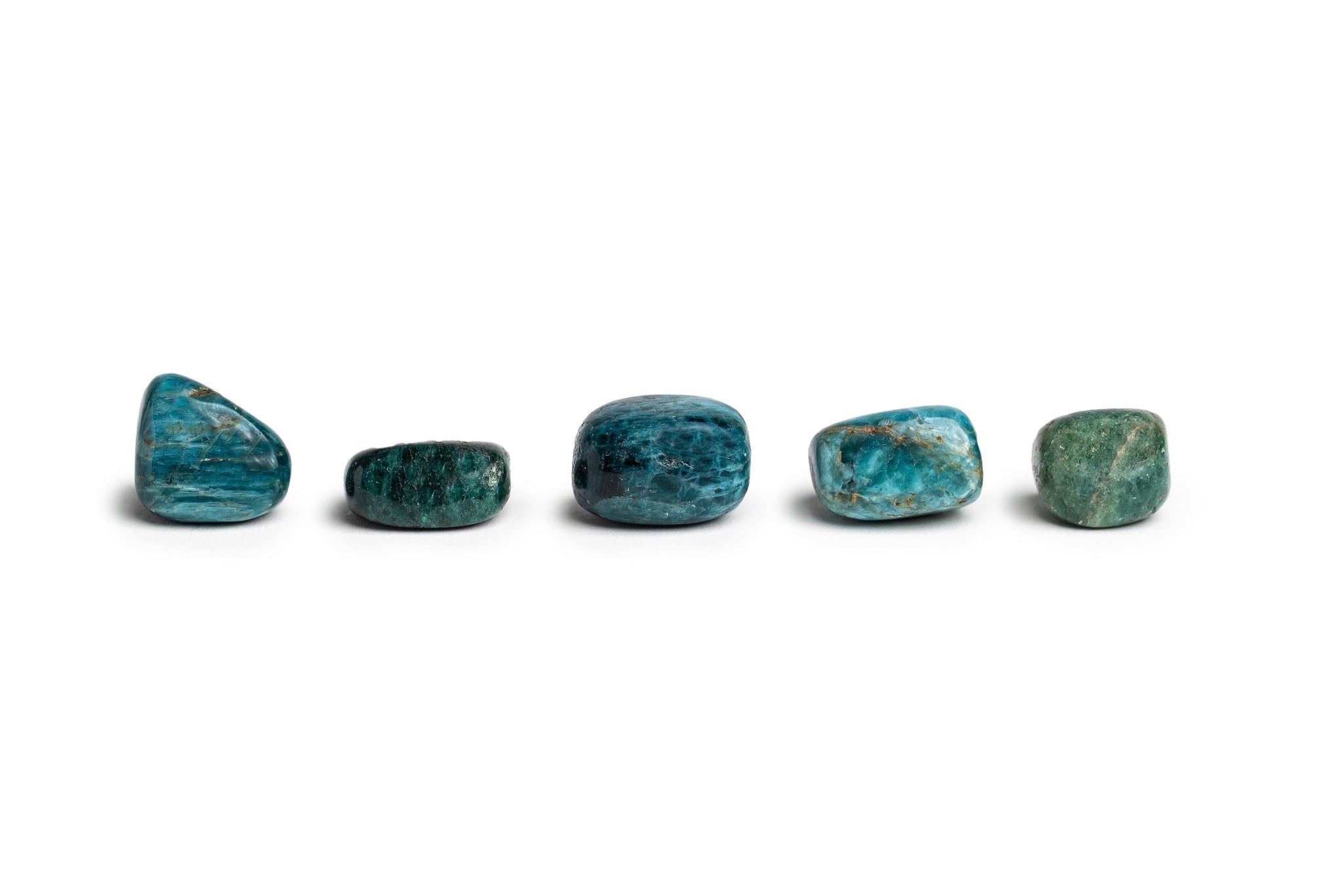 All the Apatite stones will vary slightly in size, shape, color and pattern. Each comes with a card that holds the information about the crystals and their meanings.