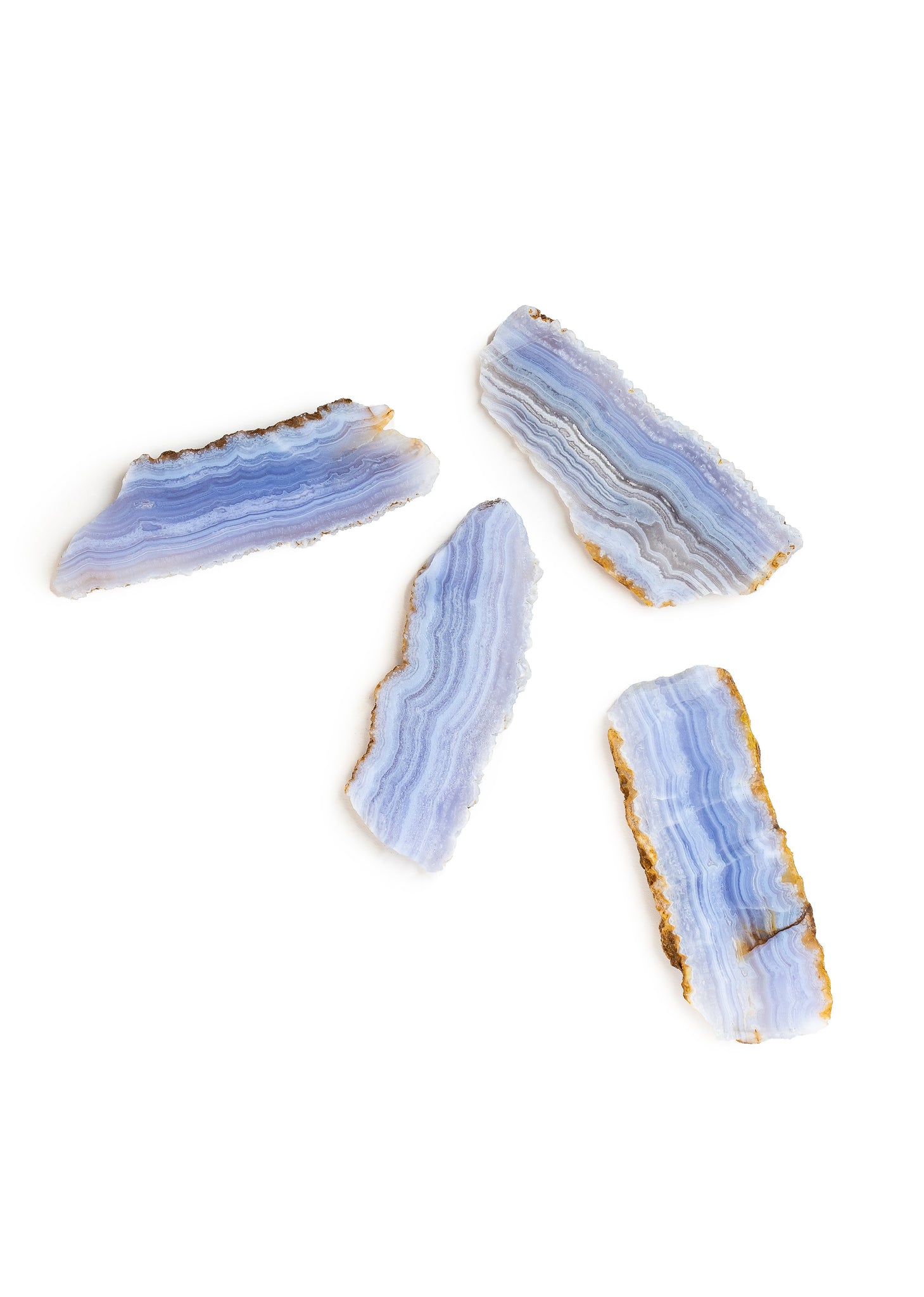 Hold a Blue Lace Agate crystal over your throat chakra to facilitate peaceful and clear communication and self-expression. Hold it in your hand during meditation and breath deeply to release stress and return to a natural state of peace.
