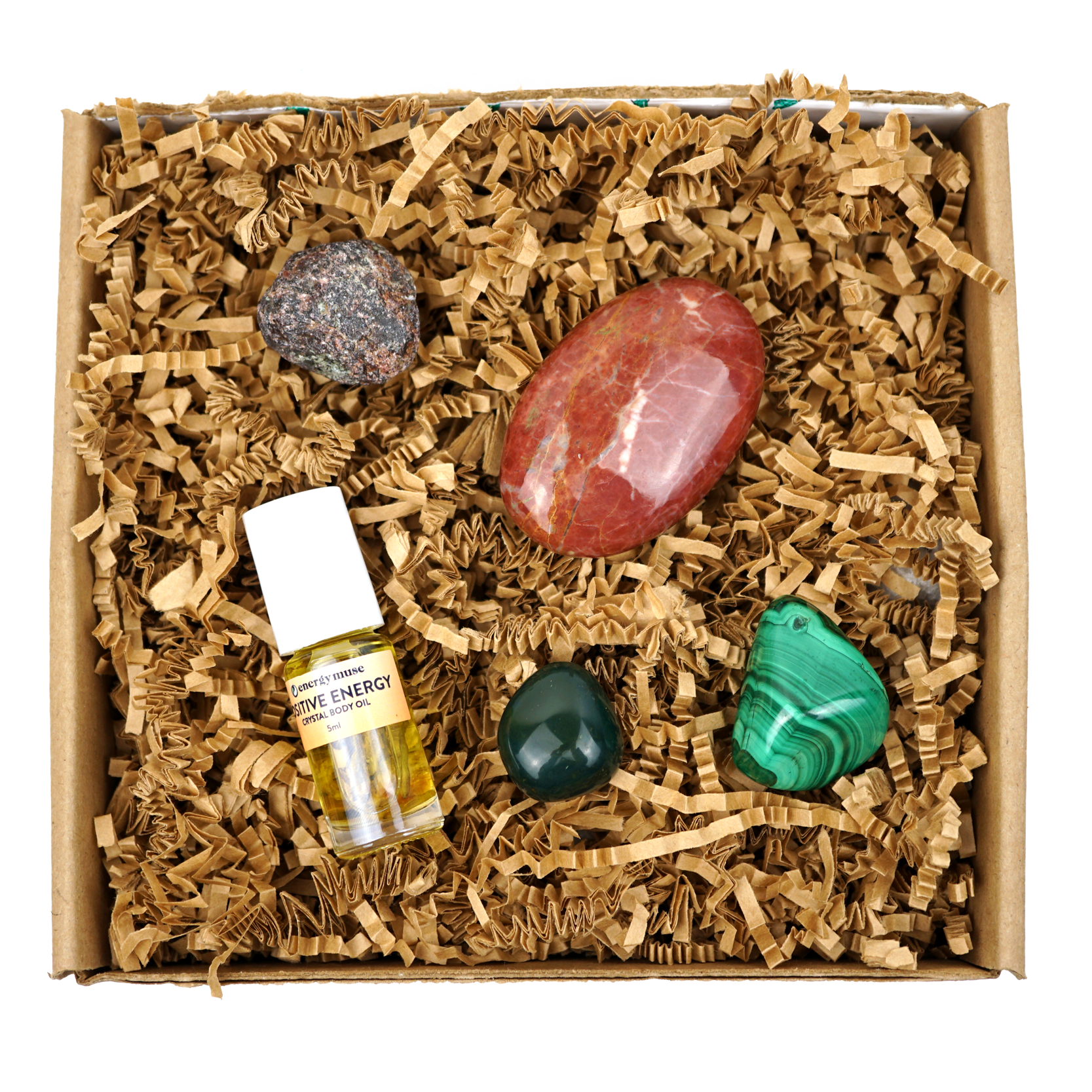 Whether you’ve hit a mid-day slump, or you can barely make it out of bed, reach for your Energy Boost Crystal Kit for an infusion of motivation and physical energy. With crystals like Bloodstone, Malachite, Garnet, and Red Jasper, plus a crystal-infused body oil, this kit features a powerful combination of energies to help you get up and get going.