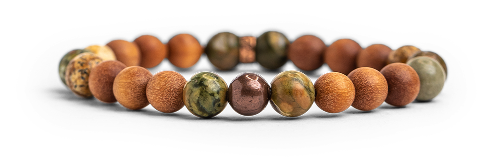Made with Wood, Rhyolite, and Picture Jasper, the Gratitude Bracelet was designed to help you align with the practice of gratitude. Gratitude is what takes you to the next level. It shifts your attention back to love, abundance and the divine qualities that lie within you. Practicing gratitude, experiencing it and expressing it has been proven to boost feelings of satisfaction, strengthen relationships and encourage us to help others. With these gratitude bracelets, we invite you to embrace loving your life, adoring yourself, accepting the world and being generous and grateful each day.