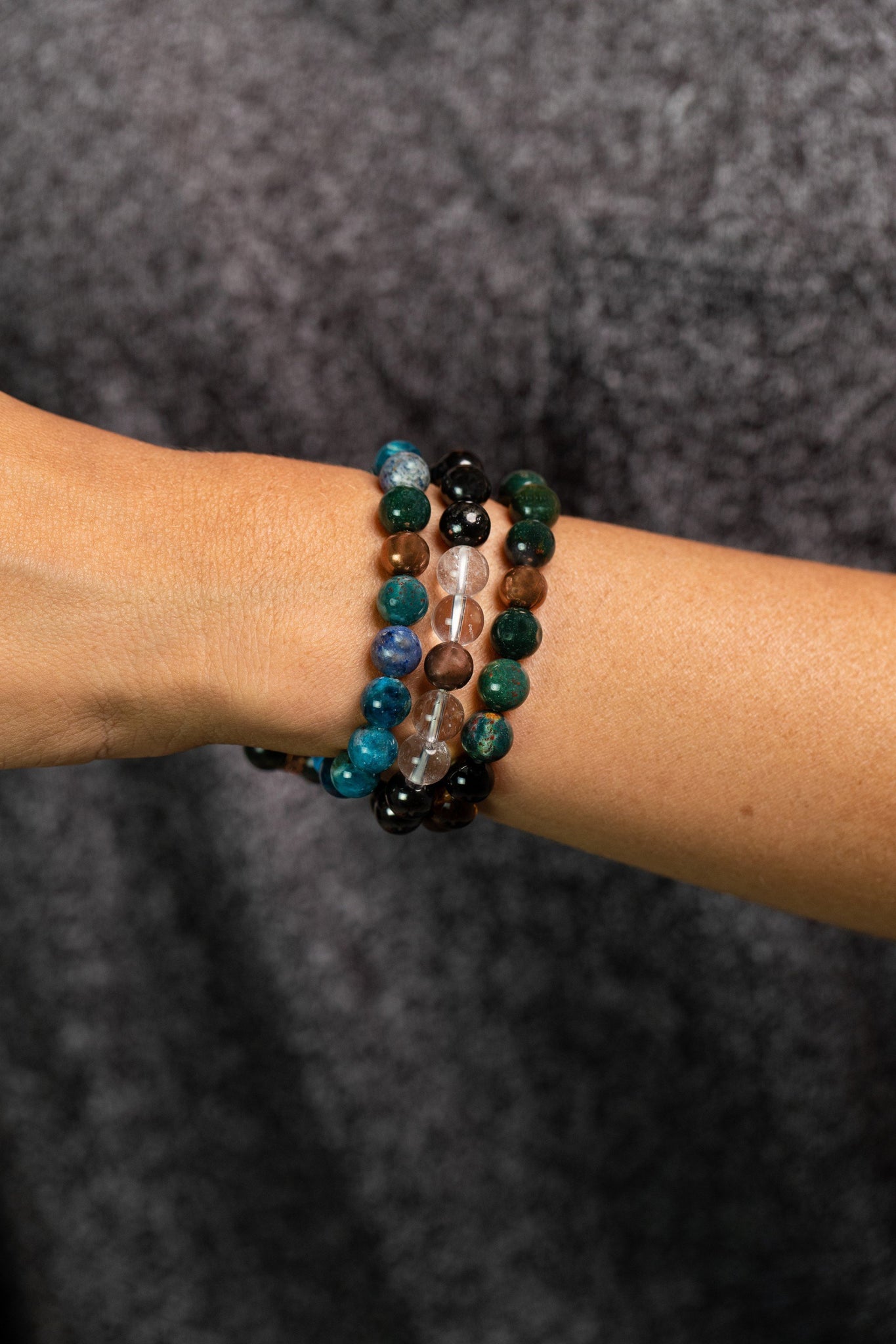 Made with Apatite, Bloodstone and Dumortierite, our Health Bracelet was created to enhance and protect your physical well-being. Wear the Health Bracelet when you want to be reminded that your health is your wealth. Whether your healthy lifestyle means taking the time to go to a doctor's appointment or add some movement to your daily routine, this bracelet gives you the mindset you need to address your long-term health goals.