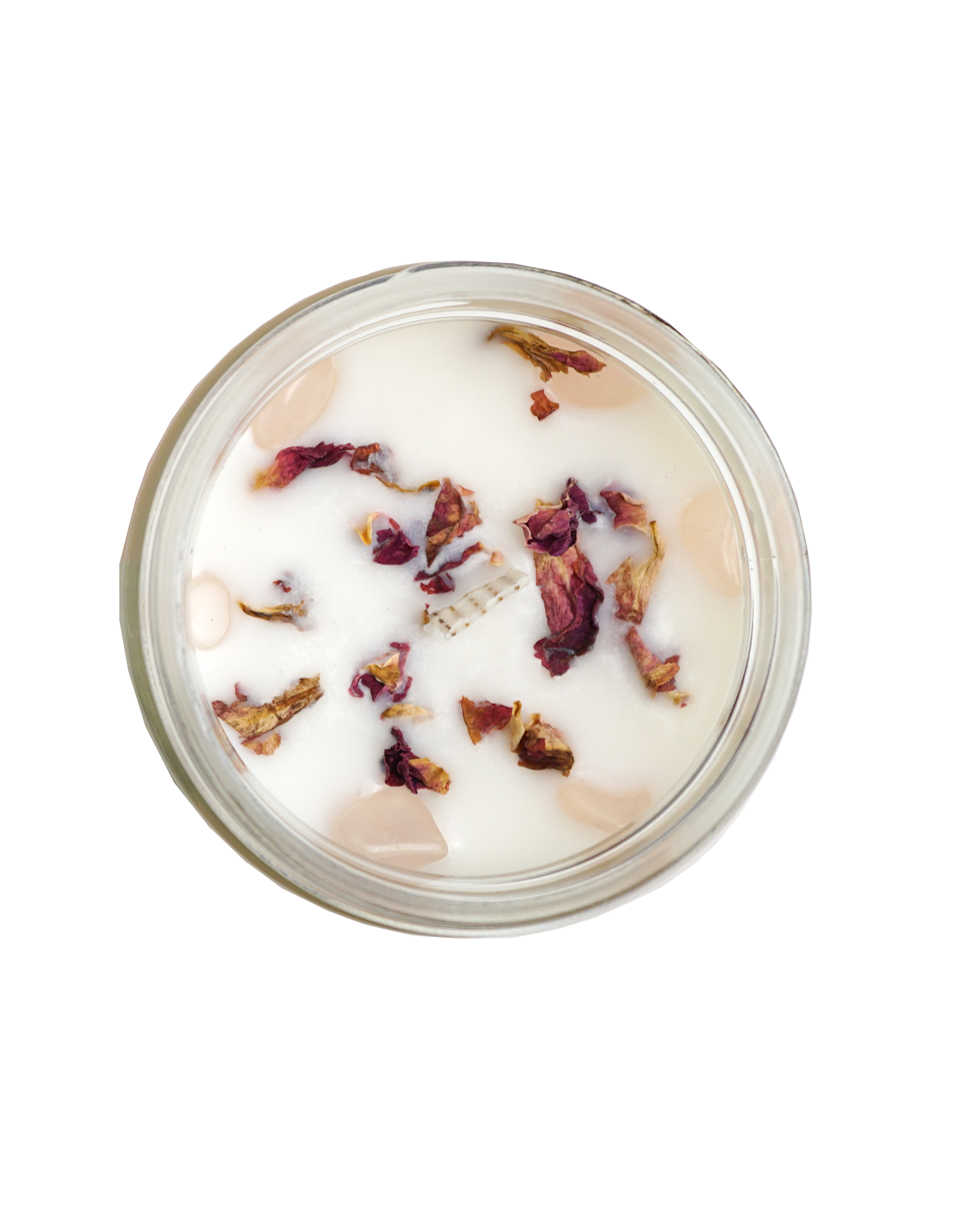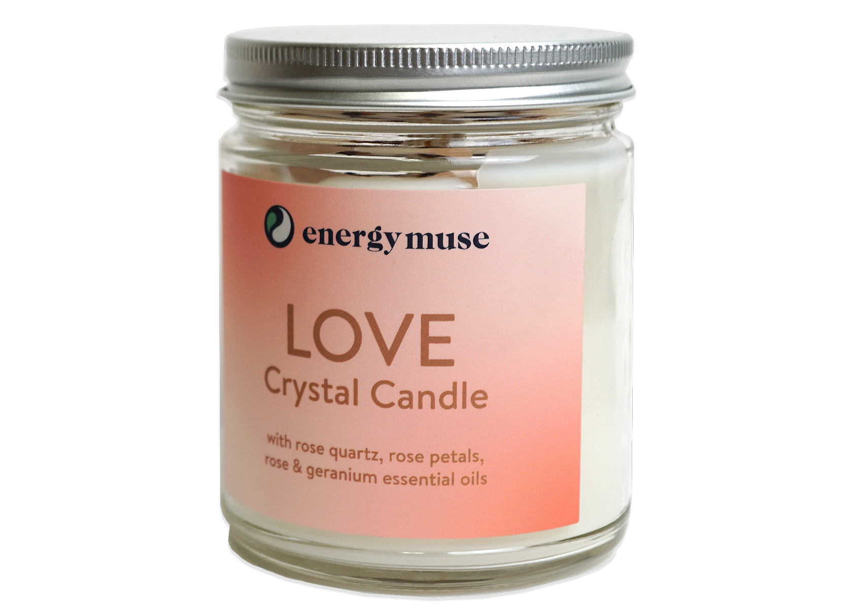 On the back of your candle, there is a space for you to write down one love intention or wish. The connection of ink, intention, crystal, flower and flame is very powerful for manifesting intentions related to love.