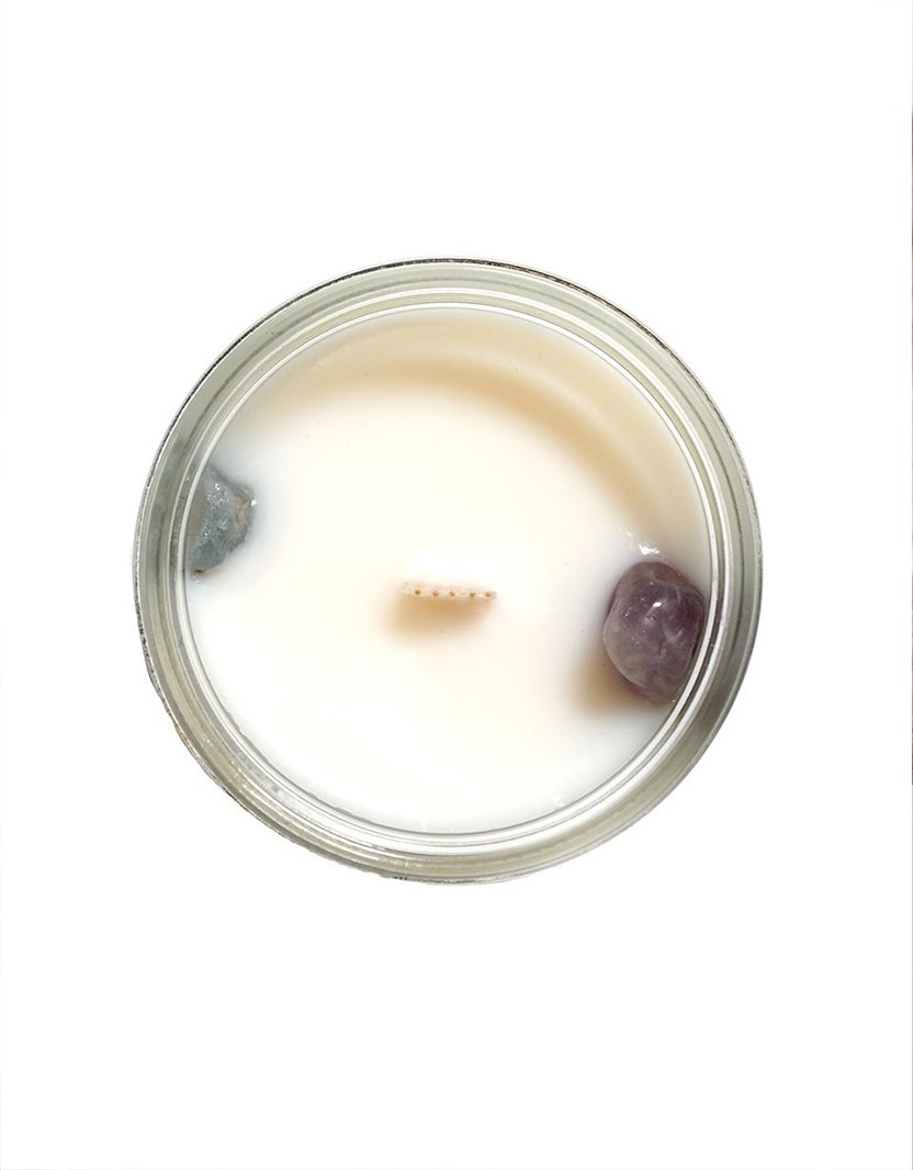 Burn this candle to relax at the end of the day or when you're taking a relaxing bath. Once your candle has burned down, carefully remove the Amethyst and Celestite crystals. Place them together on your nightstand to infuse your bedroom with peace and relaxation.