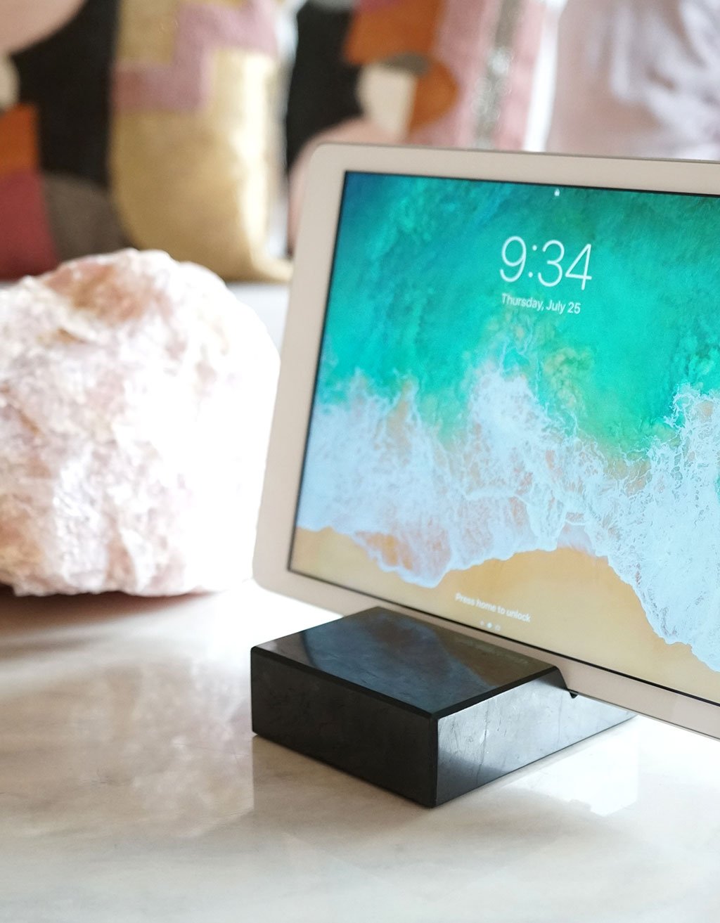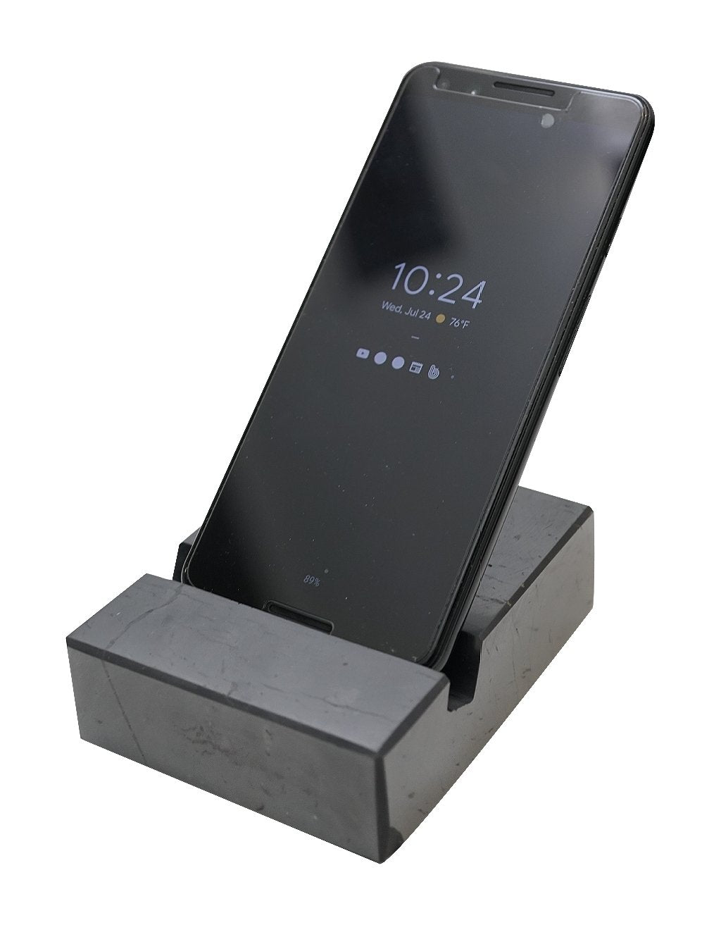 Shungite's chemical structure gives it the ability to neutralize EMFs from your cell phone. When you place your phone on a Shungite Cell Phone Holder, you can more easily avoid the temptation to constantly be near or in contact with technology. This convenient Shungite cell phone holder gives you a much needed break from holding your phone, and gives you the time you need to digitally detox.