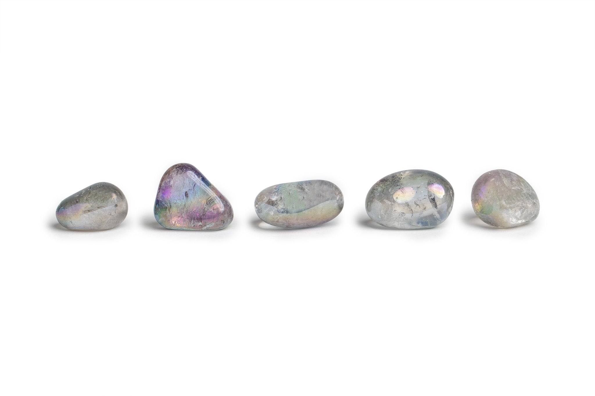 All the Silver Aura Quartz stones will vary slightly in size, shape, color and pattern. Each comes with a card that holds the information about the crystals and their meanings.